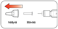 - Jos sinulla on vaikeuksia irrottaa kynän suojakorkkia, kierrä korkkia varovasti edestakaisin ja vedä sen jälkeen korkki suoraan pois.