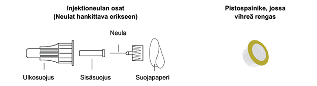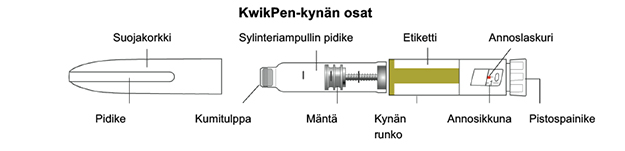 - KwikPen-kynän kanssa yhteensopiva neula (BD:n [Becton, Dickinson and Company] kynäneulat suositeltavia).