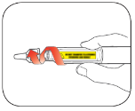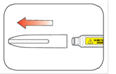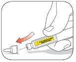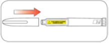 - Jos sinulla on vaikeuksia irrottaa kynän suojakorkkia, kierrä korkkia varovasti edestakaisin ja vedä sen jälkeen korkki suoraan pois.