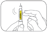 Pidä Kynää neulan kärki ylöspäin. Napauta sylinteriampullin pidikettä sormella varovasti, jotta ilmakuplat siirtyvät ylös.