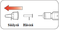 • Kierrä ulkosuojuksen avulla neula irti ja hävitä se jäljempänä olevien ohjeiden mukaisesti (ks. kohta Kynien ja neulojen hävittäminen).