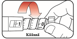 | Vaihe 7: - Kierrä pistospainiketta hitaasti, kunnes kuulet kaksi naksahdusta ja annosikkunassa näkyy pidempi viiva