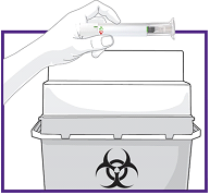 • Hävitä kynä käyttäen terävän jätteen keräysastiaa tai lääkäriltä, apteekkihenkilökunnalta tai sairaanhoitajalta saamiesi ohjeiden mukaisesti. • Älä käytä uudelleen terävän jätteen keräysastiaa, kun se on täyttynyt. • Kysy käyttämättömien lääkkeiden hävittämisestä lääkäriltä, apteekkihenkilökunnalta tai sairaanhoitajalta. |  |