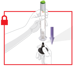 Varmista, että kynä on lukittu. • Vedä harmaa kantaosan suojus pois.