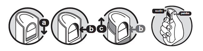 1. Liu’uta painiketta peukalolla alaspäin (a), kunnes sen saa painettua kevyesti sisäänpäin (b). Älä paina liian kovaa.