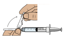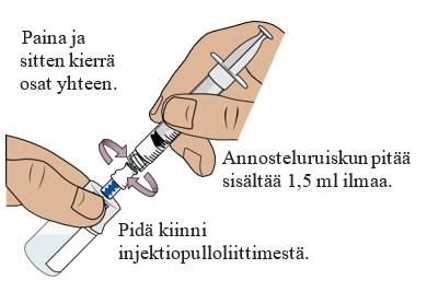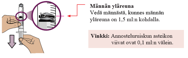 Vedä annosteluruiskuun 1,5 ml ilmaa pitämällä annosteluruiskua pystyssä ja vetämällä mäntää alaspäin.
