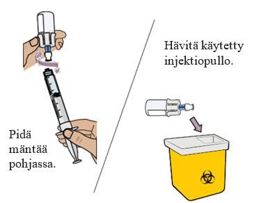 Laita tyhjä injektiopullo terävälle jätteelle tarkoitettuun astiaan.