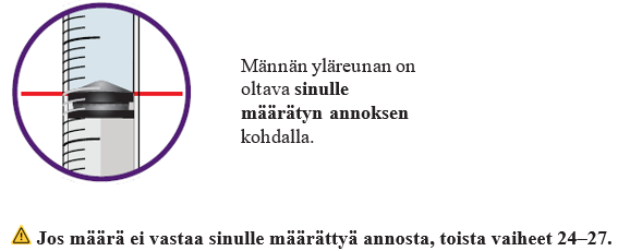 24 Vedä annos ruiskusta vetämällä mäntää taaksepäin