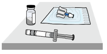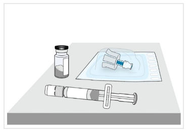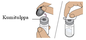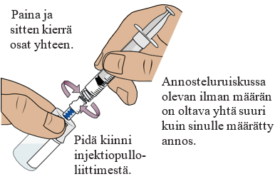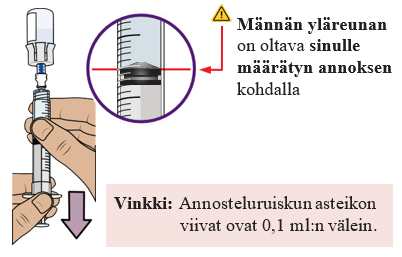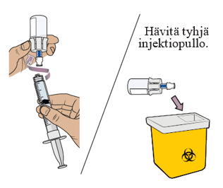 - Vedä ruiskuun sinulle määrätty annos injektiopullosta 2.