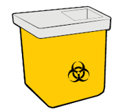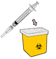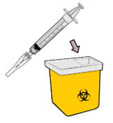 Laita molemmat ruiskut terävälle jätteelle tarkoitettuun astiaan.