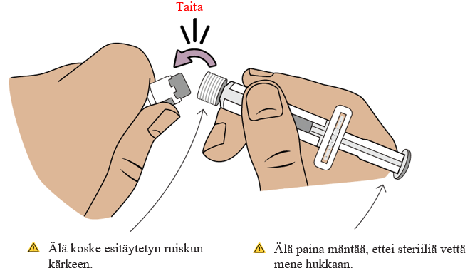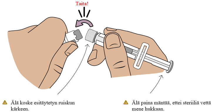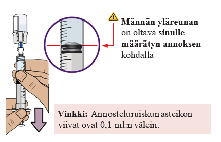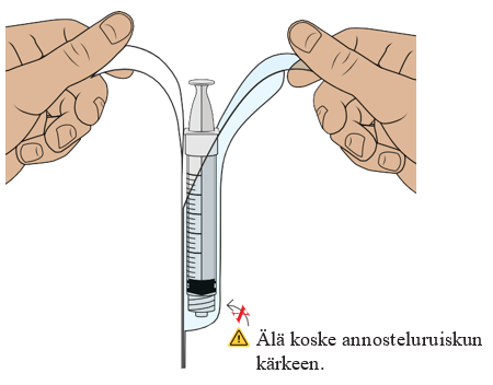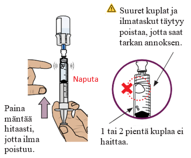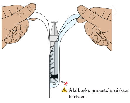 Varo, ettet vedä mäntää ulos annosteluruiskusta.
