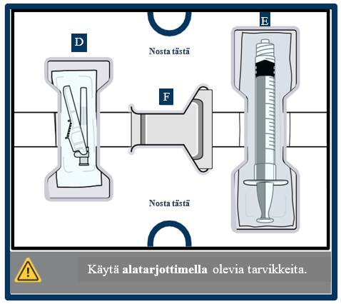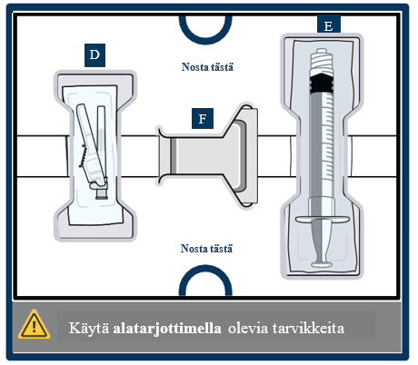 Älä käytä, jos mitkään tarvikkeet ovat vahingoittuneet. Jos olet epävarma asiasta, ota yhteyttä lääkäriin tai apteekkihenkilökuntaan ja pyydä uusi pakkaus.