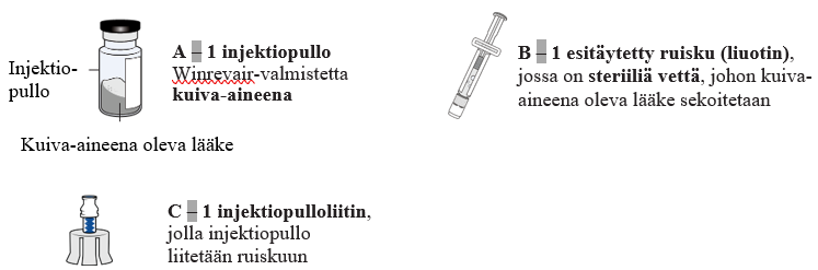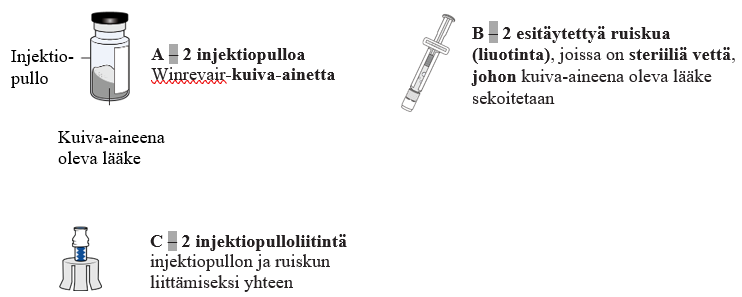 - Lue erillinen Käyttöohjeet-vihkonen, joka toimitetaan Winrevair-valmisteen mukana.