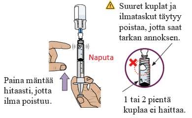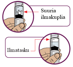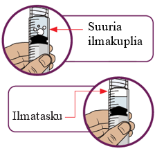 Toista vaiheita 24–26, kunnes olet saanut ruiskuun sinulle määrätyn annoksen eikä ruiskussa näy suuria kuplia.
