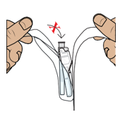 Tarkista, että injektiopulloliitin on kiinnitetty injektiopulloon kunnolla. Jos näin ei ole, pidä kiinni injektiopullosta ja paina injektiopulloliitintä lujasti alaspäin, jotta injektiopulloliitin lävistää injektiopullon kumitulpan.