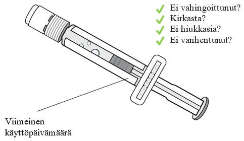 Älä käytä pakkausta, jos sen osat ovat vahingoittuneet tai niissä on jotakin vikaa. Ota yhteyttä lääkäriin tai apteekkihenkilökuntaan ja pyydä uusi pakkaus.