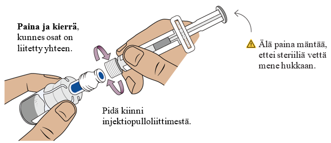 - Yhdistä molempien injektiopullojen lääke.
