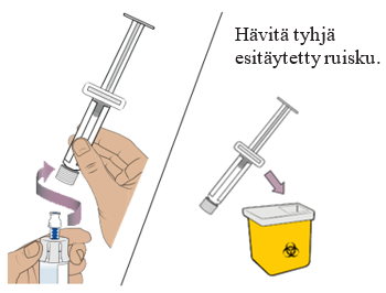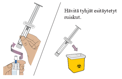 14 Irrota esitäytetty ruisku injektiopullosta