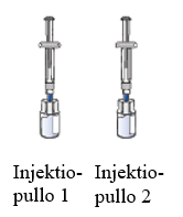 - sekoitettua lääkettä sisältävät injektiopullot 1 ja 2