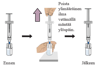 13 Valmistele injektiopullo poistamalla ylimääräinen ilma