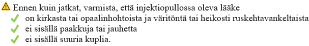 Ennen kuin pistät lääkkeen, lue kaikki tässä vihkosessa esitetyt ohjeet, jotta saat oikean lääkeannoksen.