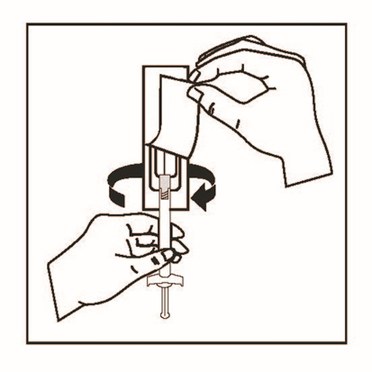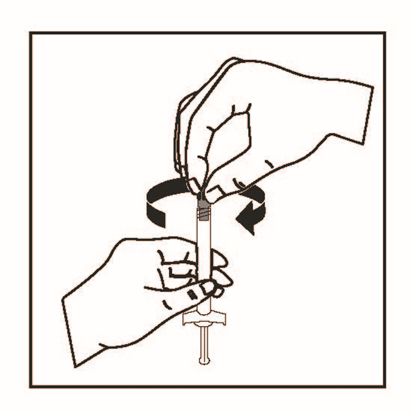 3. Pidä ruiskua pystyasennossa ja poista kuminen kärkisuojus kiertämällä se irti.