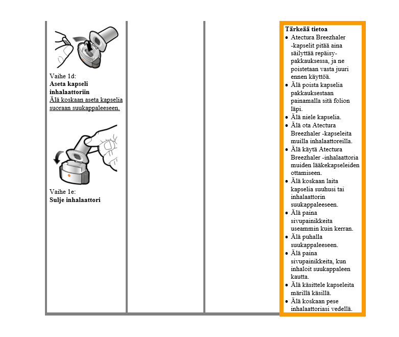 Atectura Breezhaler inhalaattorin käyttöohjeet