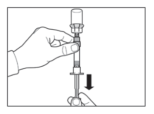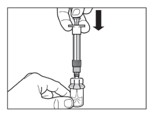 - Käännä injektiopullon ja ruiskun yhdistelmä ylösalaisin ja vedä hitaasti mäntää ulospäin, kunnes injektiopullon koko sisältö on ruiskussa.