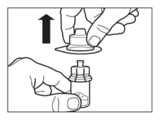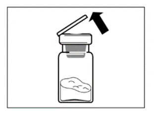 - Poista injektiopullon muovikorkki ja puhdista kumitulpan pinta alkoholipyyhkeellä.