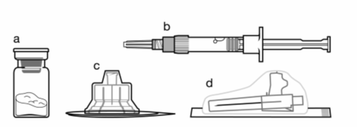 Yksikköpakkaus sisältää yhden lasisen, bromobutyylikumitulpallisen 6 ml:n injektiopullon, joka on sinetöity alumiinisella repäisysinetillä ja joka sisältää injektiokuiva-aineen suspensiota varten, sekä yhden värittömän, esitäytetyn, lasisen 3 ml:n ruiskun, joka sisältää 2 ml liuotinta ja on suljettu kahdella klorobutyylikumitulpalla (toinen ruiskun etuosassa ja toinen männän yhteydessä). Injektiopullon ja esitäytetyn ruiskun lisäksi pakkaus sisältää yhden injektiopulloadapterin sekä yhden turvainjektioneulan. Kaikki komponentit on pakattu sinetöityyn läpipainopakkaukseen.