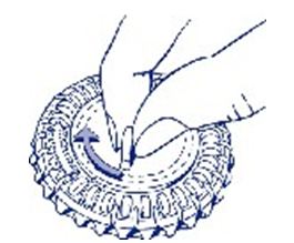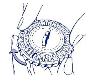 Seuraavana päivänä kierrä läpinäkyvää levyä myötäpäivään päivä kerrallaan nuolen osoittamaan suuntaan. Ota ulos seuraava tabletti. Muista ottaa vain 1 tabletti kerran päivässä.