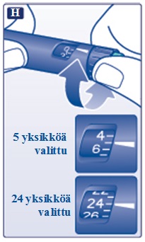 Kierrä annosvalitsin pistosta varten tarvitsemasi yksikkömäärän kohdalle.