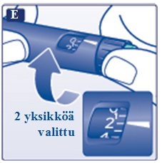Kierrä annosvalitsinta valitaksesi 2 yksikköä.