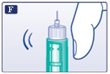 Pidä FlexPen®-kynää neula ylöspäin ja napauta sylinteriampullia kevyesti sormella muutama kerta, jotta mahdolliset ilmakuplat siirtyvät sylinteriampullin yläosaan.