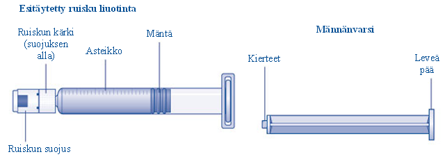 Jos ruiskun suojus on irrallaan tai puuttuu, älä käytä esitäytettyä ruiskua.