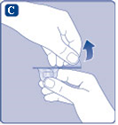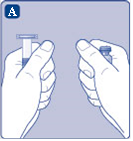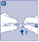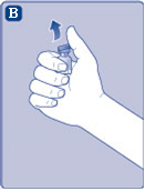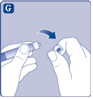 - Poista suojus esitäytetystä ruiskusta taivuttamalla sitä alaspäin kunnes rei'itys murtuu.