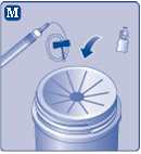 - Käännä suojahattu toisin päin, ja napsauta liitin kiinni injektiopulloon.