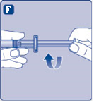 - Yhdistä männänvarsi välittömästi ruiskuun kiertämällä sitä myötäpäivään kiinni esitäytetyn ruiskun sisällä olevaan mäntään, kunnes tunnet vastuksen.
