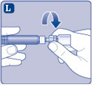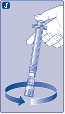 - Kierrä esitäytetty ruisku tiukasti kiinni injektiopulloliittimeen, kunnes tunnet vastuksen.