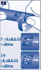 Kierrä annosvalitsin pistosta varten tarvitsemasi yksikkömäärän kohdalle.