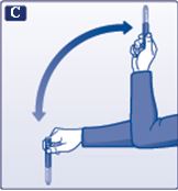 ► Varmista aina, että olet sekoittanut insuliinin ennen jokaista pistosta. Se vähentää liian korkean tai liian matalan verensokeritason riskiä. Sekoittamisen jälkeen suorita muut pistämisen vaiheet viivyttelemättä.