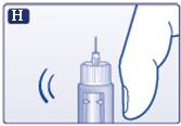 Pidä FlexPen®-kynää neula ylöspäin ja napauta sylinteriampullia kevyesti sormella muutama kerta, jotta mahdolliset ilmakuplat siirtyvät sylinteriampullin yläosaan.
