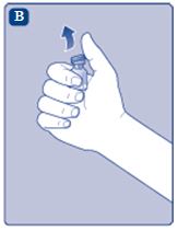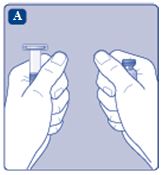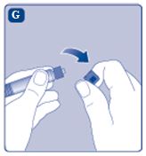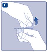 - Poista suojus esitäytetystä ruiskusta taivuttamalla sitä alaspäin kunnes rei'itys murtuu.