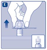 - Poista muovihattu injektiopullosta. Jos muovihattu on irti tai puuttuu, älä käytä pulloa.