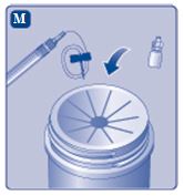 - Käännä suojahattu toisin päin ja napsauta liitin kiinni injektiopulloon.