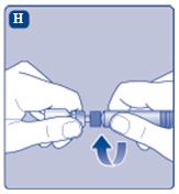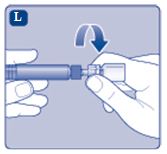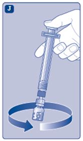 - Kierrä esitäytetty ruisku tiukasti kiinni injektiopulloliittimeen, kunnes tunnet vastuksen.