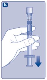 - Pidä männänvartta alas painettuna ja pyöritä injektiopulloa varovasti, kunnes kuiva-aine on kokonaan liuennut.