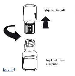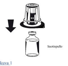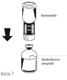 - yksi pullollinen liuotinta, injektionesteisiin käytettävää vettä