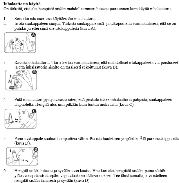 On hyvin tärkeää, että noudatat lääkärin ohjeita siitä, miten monta inhalaatiota otat ja kuinka usein otat lääkettäsi.
