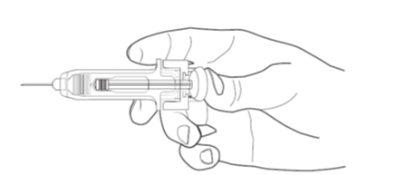 9. Ruisku on nyt käyttövalmis. Ruiskussa voi olla pieni ilmakupla, jota ei tarvitse poistaa ennen injektion pistämistä. Liuoksen, jossa on ilmakupla, voi vaaratta pistää.